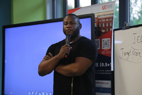 Lloyd老师向同学们详细阐释了IELTS的深刻内涵后,亲切地询问每位同学所期望达到的雅思分数,并深入了解他们的专业,引导同学们用流利的英语阐述自己的专业领域。