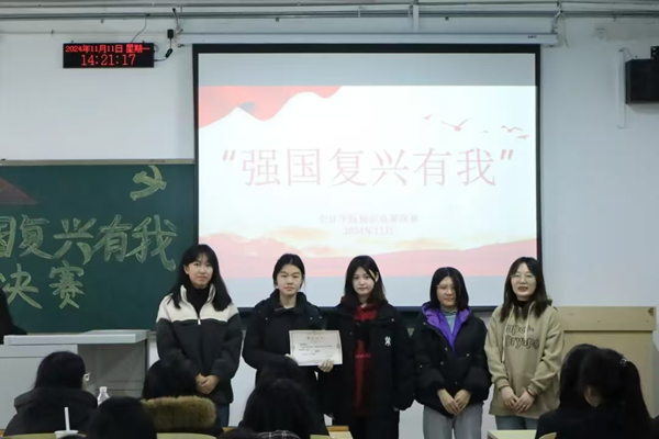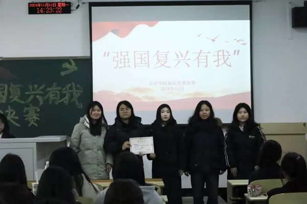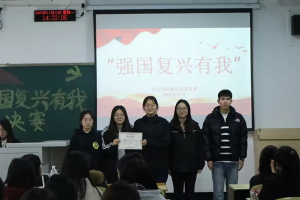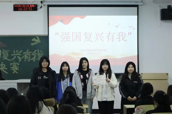 为深入学习贯彻习近平新时代中国特色社会主义思想和党的二十届三中全会精神,重温党的光辉历程,展现新时代会计学院学子的良好精神风貌,2024年11月11日,会计学院“强国复兴有我”知识竞赛决赛在M104举行。