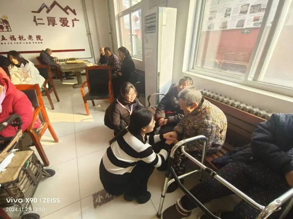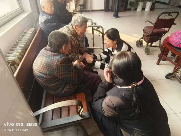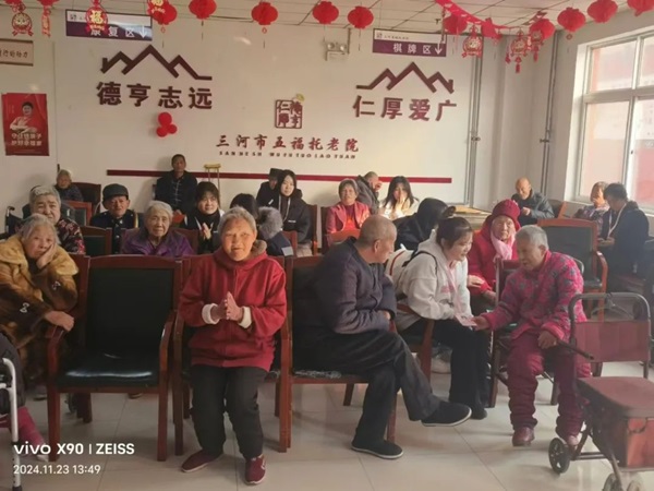三河市五福托老院成立于2007年,是廊坊地区首家集托老、医疗、保健、康复为一体的综合型托老养护服务机构。拥有专业的护理人员及医生护士,依托三河市煤矿医院强大的医疗卫生服务资源,为老人提供专业、安全的医疗保障的同时还会组织老人参与多种娱乐活动,丰富老人精神文化生活。然而随着老龄化程度加深,营造全社会关爱老年群体的氛围的问题凸显。因此,为更好传承中华美德,弘扬敬老新风,更好展现孝敬之美,弘扬真善美,在这个凛冬暖阳的周末,萌连心志愿服务社的一群怀揣着有孝老敬老爱老的志愿者们加入到这场活动中。