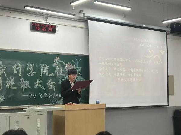 时光荏苒,如白驹过隙,转眼间又一段社团工作的历程画上了句号,在12月4日,会计学院社团管理部于C楼303召开述职大会,而召开的社团述职报告大会既是对过往工作的一次全面回顾与梳理,也是我们相互交流、汲取经验、展望未来的重要契机。每一份述职报告都承载着社团成员们的付出与心血,见证我们一路走来的成长与收获,通过此次大会,我们进一步明晰方向,携手为社团的蓬勃发展再添新章。