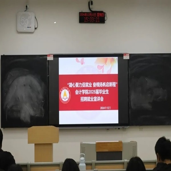 为深入贯彻执行党中央、国务院关于“稳定就业”与“保障就业”的战略部署,切实落实省教育厅关于就业工作的会议精神,拓展毕业生的就业途径,推动2025届毕业生就业工作的顺利进行,会计学院于12月12日举办了“2025届毕业生招聘宣讲会系列活动”,2025届全体毕业生参加了此次会议。