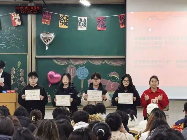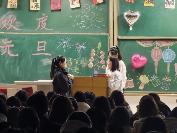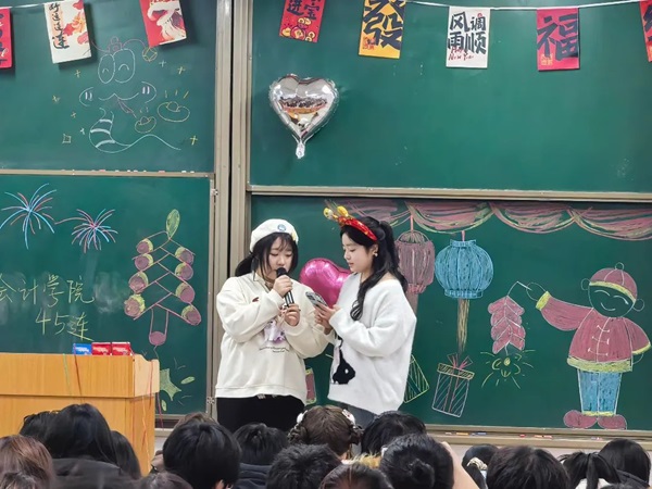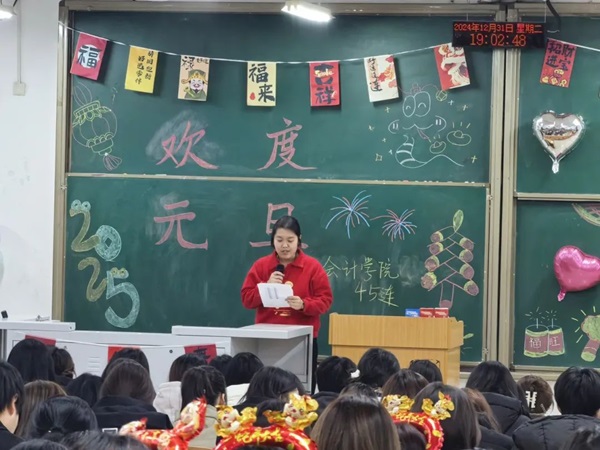 为提高集体凝聚力,增进同学感情,推动互相了解,传递师生情感与同学情感,促进学生在校归属感,会计学院2024级45连,12月31日于综合楼204举办元旦晚会。
