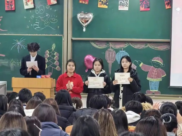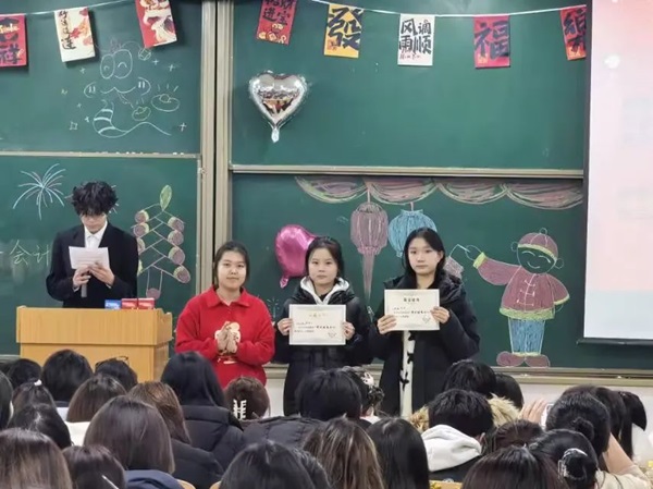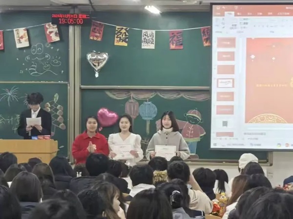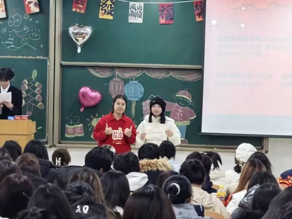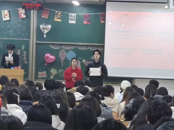 接下来,张小芳老师及45连同学为1月生日的同学共同庆生,并为此准备了新年红包、生日蛋糕及神秘惊喜,并通过游戏、抽奖等方式让同学们积极参与其中。这不仅仅让同学们的脸上浮现出喜气洋洋的表情,还为晚会的开始提前预热,让现场氛围达到新的高潮。