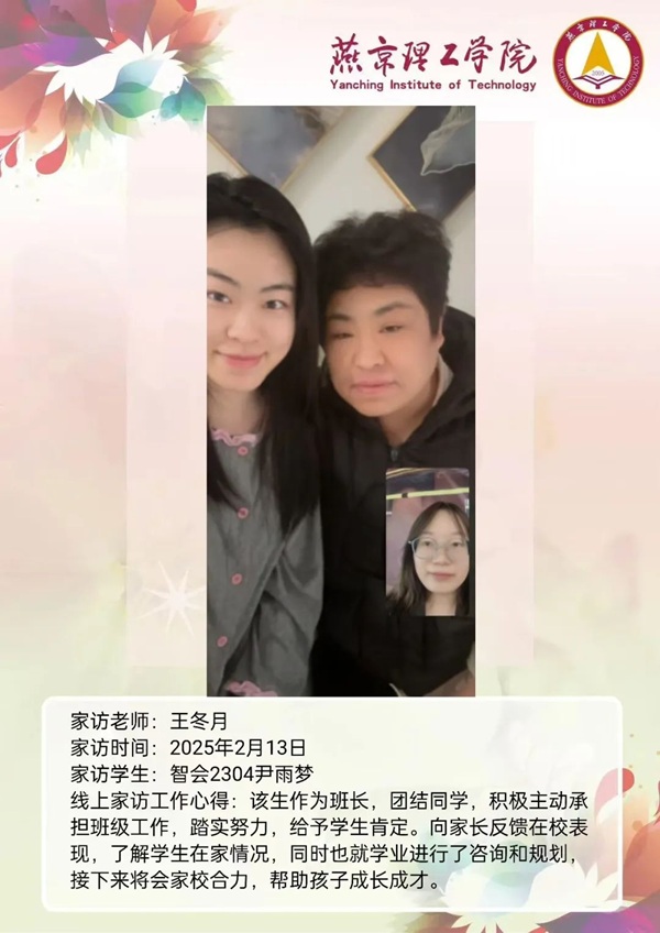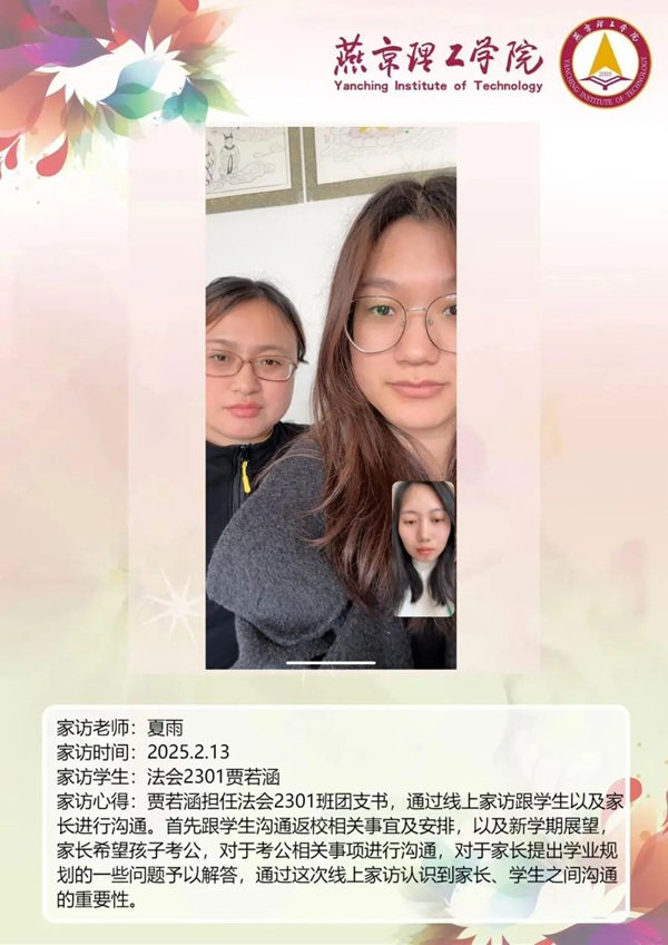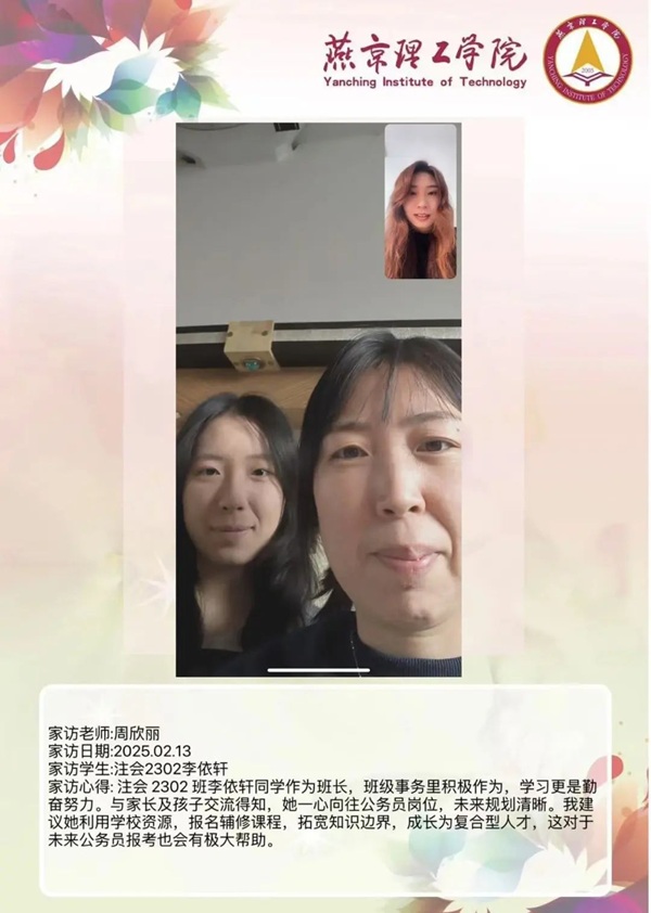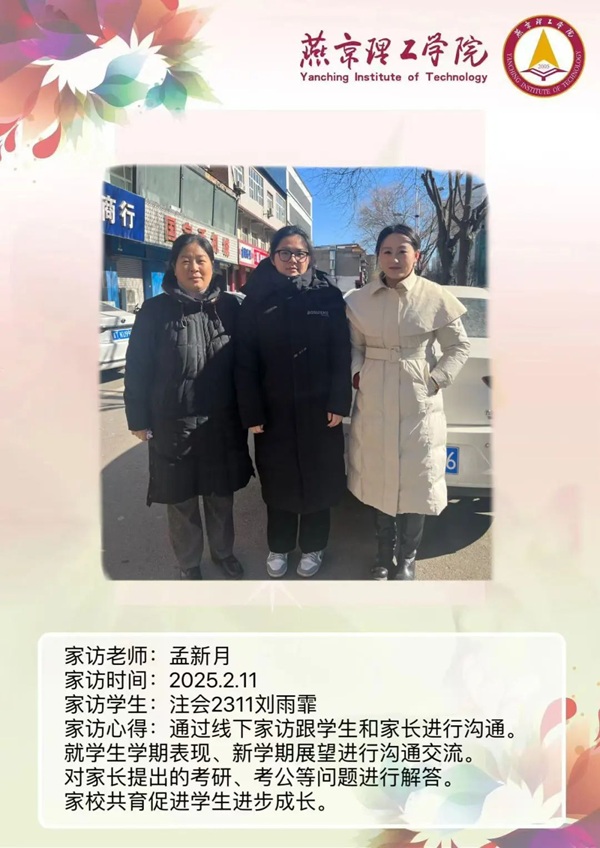 教育是一场温暖的修行,是家庭与学校的双向奔赴。在这个充满希望与期待的 2025 年,燕京理工学院的老师们怀揣着对学生的关爱与责任,踏上了家访的旅程。家访,不仅仅是一次简单的家校沟通,更是一次心与心的交流,是对学生成长的深度关注,是用爱搭建起的一座通往学生心灵深处的桥梁。老师们带着满满的热忱,走进学生的家庭,去倾听他们的故事,去了解他们的成长环境,去感受家庭与学校携手共育的力量。