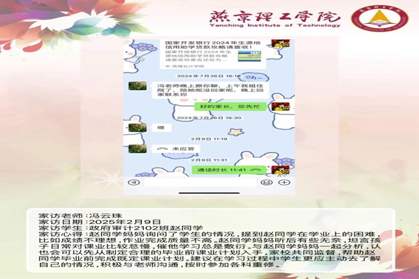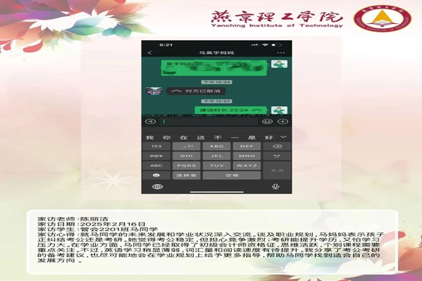 每一次家访都是一次心灵的触碰,每一次交流都是一次教育的升华。通过家访,教师们更加深入地了解了学生,也让家长更加理解和支持学校的工作。在家校共育的道路上,请让我们携手前行,用爱与责任为学生的成长保驾护航。让我们共同期待下一次家访,开启更多温暖的故事,助力会计学院学子在未来发展的道路上绽放出明媚的光彩,书写未来美好的篇章。