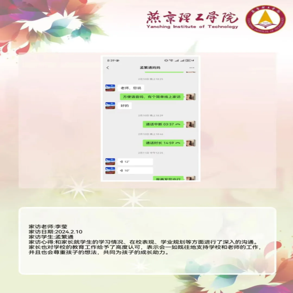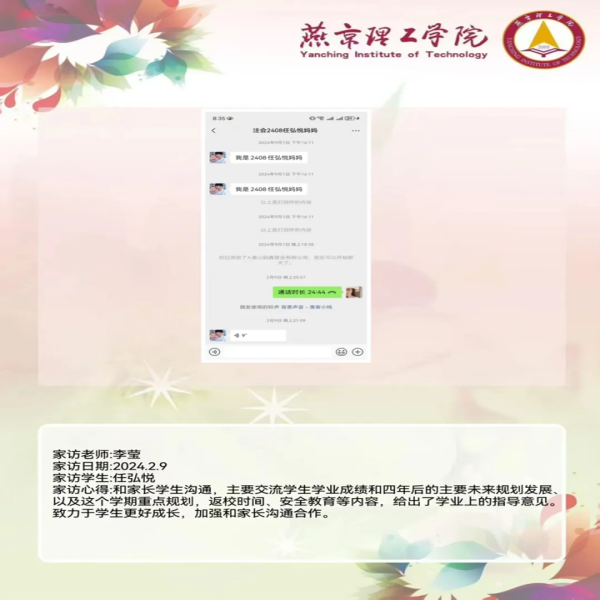 此次家访活动,如一场及时雨,搭建起坚实的家校桥梁,滋润了学生与家长的心田,拉近了家校距离。会计学院将以此次家访为契机,凝聚教育合力,持续深化家校合作,精心培育更多德才兼备的会计人才,为学生成长保驾护航,共绘学生美好未来蓝图。