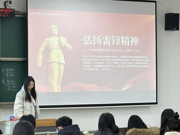 在这个充满温暖与希望的季节里,会计学院积极践行学雷锋活动,院内各连队开展了一场以“传承雷锋精神,团员青年在行动”为主题的团日活动。此次团日活动不仅让同学们深刻理解了雷锋精神的内涵,更激发了大家用实际行动践行雷锋精神的热情。