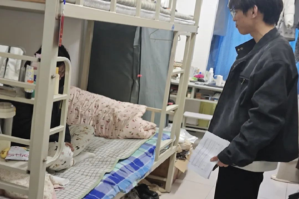 检查过程中,辅导员们分组走访每一间学生宿舍,重点排查用电安全、消防设施、门窗防盗及卫生状况。针对违规电器、私拉电线、易燃物品堆放等问题进行逐一记录并现场整改;对灭火器有效期、应急通道畅通性等关键环节进行复查。学院党总支书记胡国超强调:“安全无小事,要坚持以‘零容忍’态度消除风险点,确保学生离校期间宿舍安全万无一失。”