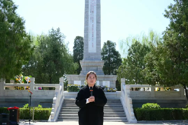 活动在庄严的国歌声中拉开帷幕,全体人员向革命烈士默哀三分钟,深切表达追思。师生代表向纪念碑敬献花束,缓缓鞠躬默哀,向革命先烈表达深切的缅怀和崇高的敬意。学生党员代表韩佩恒发言,缅怀先烈英勇事迹,表达继承遗志的决心。