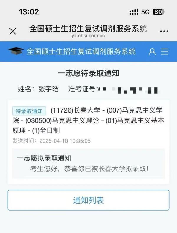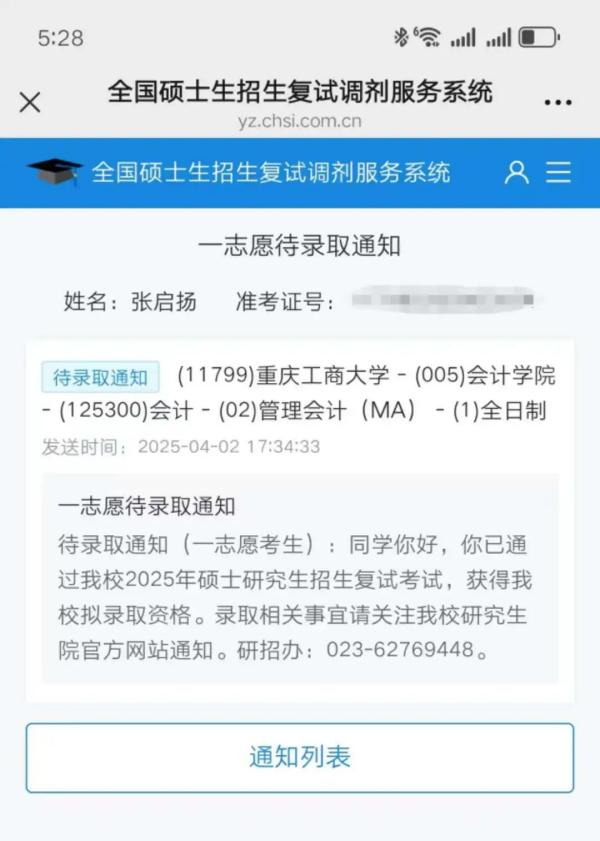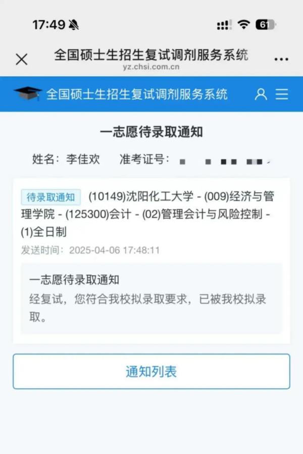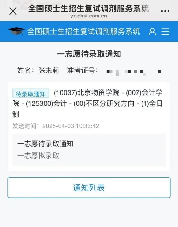 注会2101张未莉考入北京物资学院