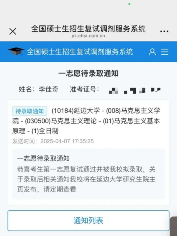 智能会计2101李佳奇考入延边大学