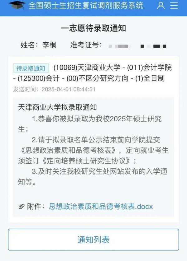 注会2107李桐考入天津商业大学