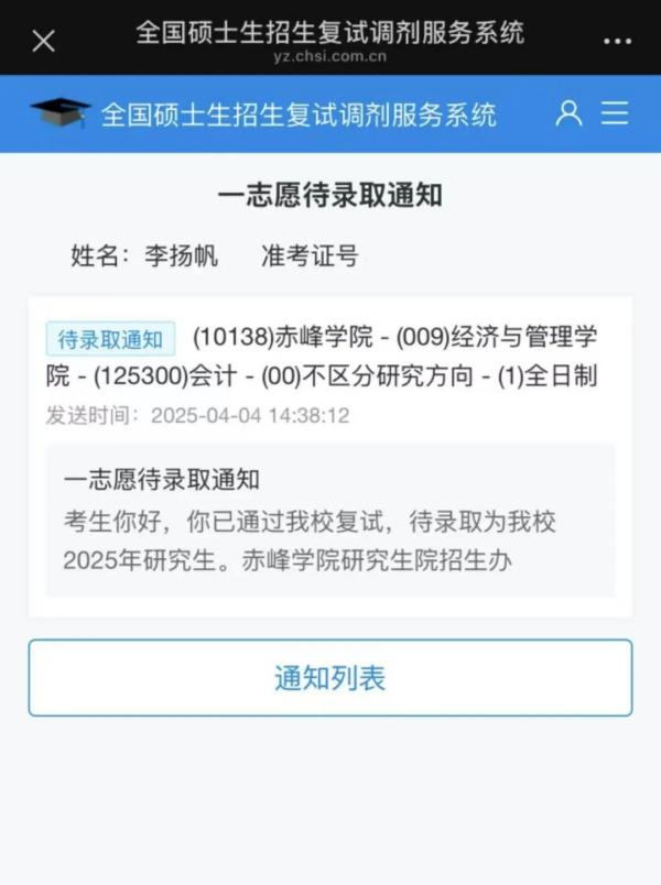 注会2108李扬帆考入赤峰学院