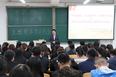 10月17日,会计学院学生第一党支部于综合楼201召开了“不忘初心,牢记使命”的主题教育学习大会。