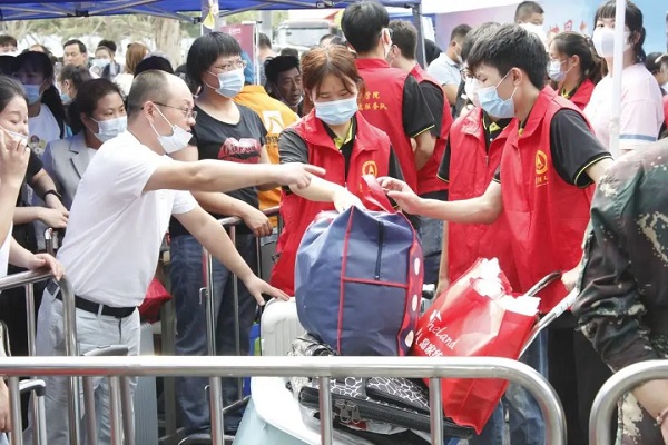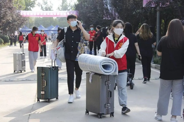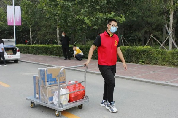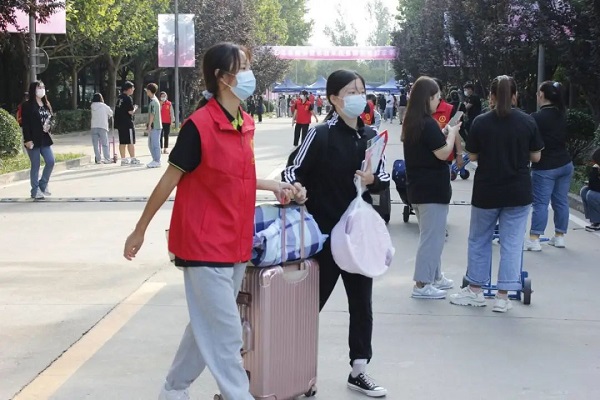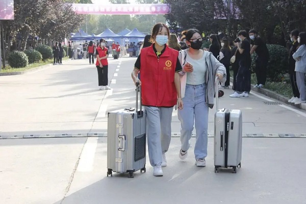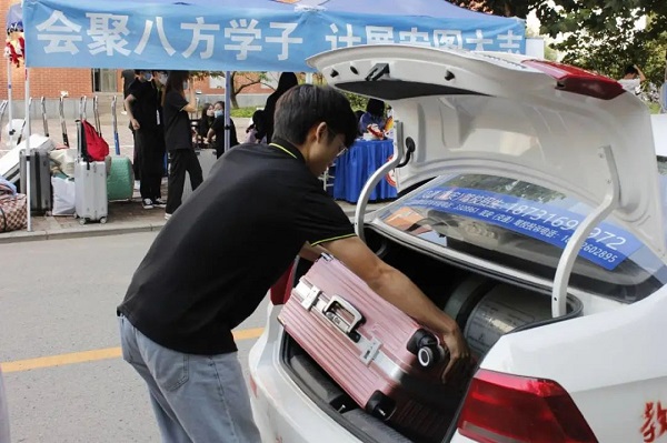 志愿者协助新生搬运行李