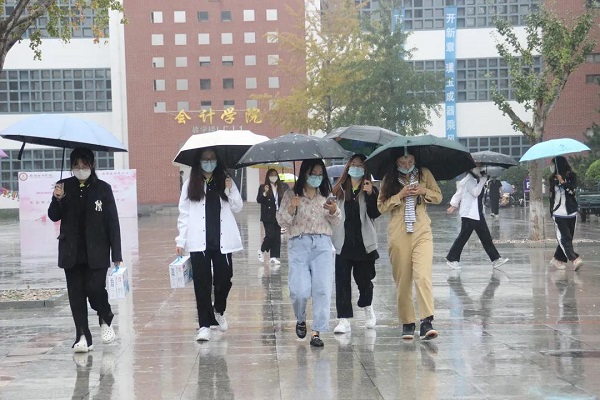 9月19日,秋雨连绵,会计学院师生仍然坚守在迎新现场,迎接一个又一个新燕理人!
