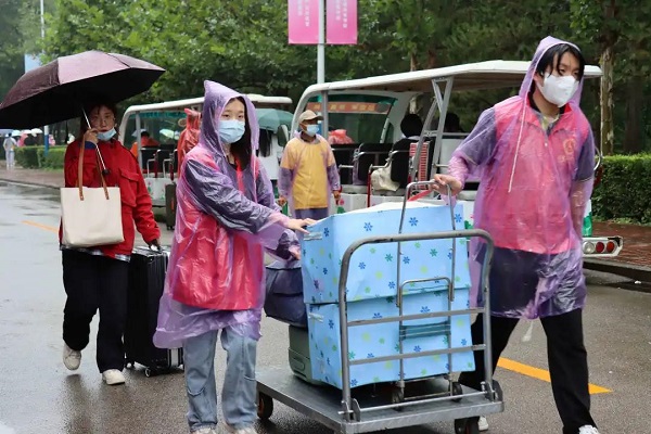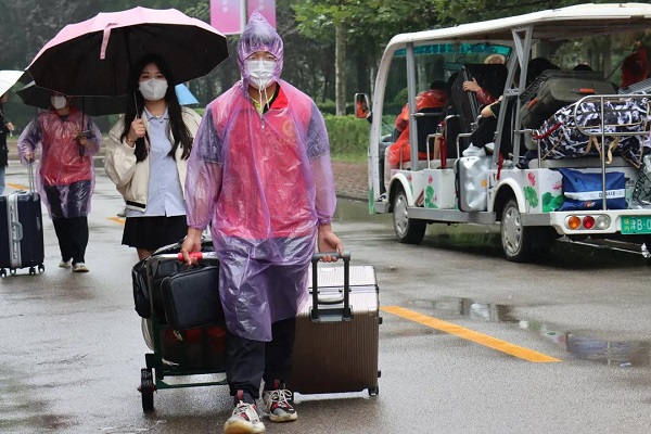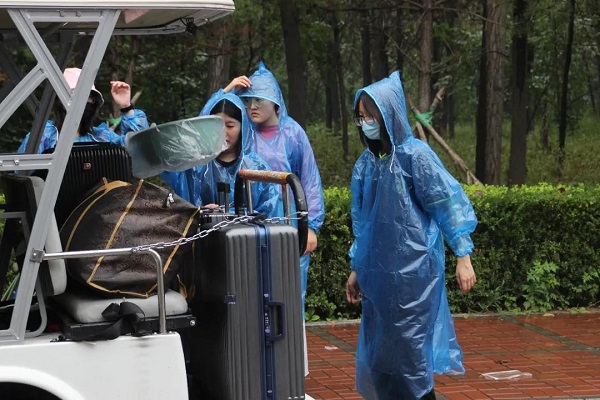 乌云密布,阴雨绵延,但仍阻挡不了新同学们来燕理的热情。志愿者们不顾雨水的阻碍,一遍又一遍穿梭在燕理的校园,帮助新同学搬运行李、引领新生完成注册报道、领取军训着装。