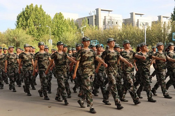 秋风飒爽,丹桂飘香,校园里入目满是鲜艳的迷彩绿。操场上,一群身穿迷彩的同学们整齐的站着军姿,有力的踏着坚毅的正步,在绿茵茵的青草和橄榄绿的迷彩军装的相互辉映下,同学们显得更加活力十足。