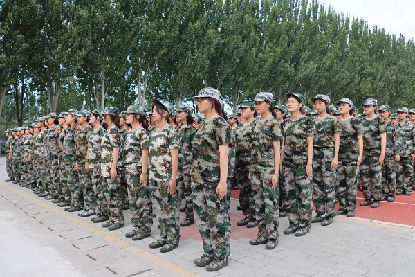 训练场上回荡着同学们稚嫩却坚定的口号,展现着他们的自信与坚毅。军官们严格要求同学们整理军容和端正军姿,手把手纠正基本的动作,同学们在军官的带领下认真训练,丝毫没有半点偷懒。