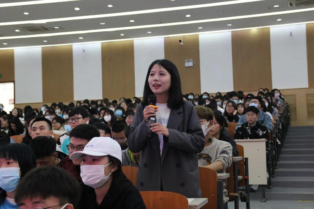 在现场提问环节,郑教授与学生们热情互动,悉心解答学生们所提出的问题。当学生问及如何规划大学四年时光时,郑教授建议,“身体要练棒;适度参加社会活动;大部分时间投入专业学习”。
