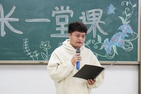 张垚锟学长将他大学一年来的心得分享给新生。他讲到,大学是一个新的起点,要给自己一个好的开始,珍惜时间,充实的度过每一天。在大学中可以多方面提升自己,加入自己喜欢的社团或者部门,认真做好每一件事,使大学生活丰富多彩。