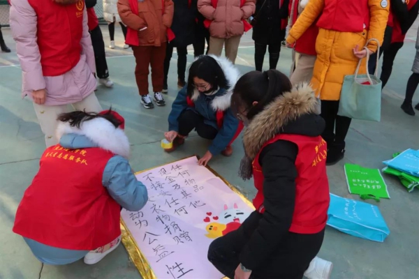 活动开始后,会计学院志愿者们搭乘校车前往天洋城小区,在小区的篮球场开展衣物募捐、健康咨询、法律知识普及、防盗防骗讲解、习“语”近人专题宣讲、文艺汇演等志愿活动。寒风虽然凛冽,但吹不散志愿者们乐于助人,甘于奉献的精神。活动中,志愿者们与小区居民亲切交流,热情互动,不仅让广大社区居民感受到了青年人的青春与活力,也拉进了大学生与社区居民的距离,受到社区居民的广泛欢迎。