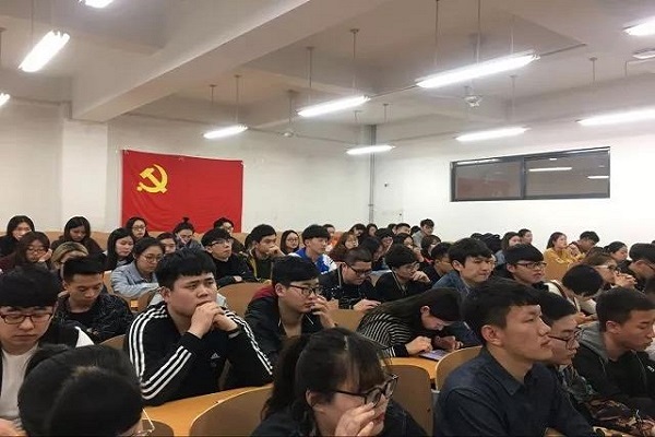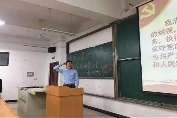 最后,全体师生宣誓。会议进行到尾声,胡书记做总结发言:第一、要求各支部要根据具体情况,对学生进行有效的指导。第二、鼓励学生党员及入党积极分子把握机会,展现自身的先进性,在学习生活中发挥先锋模范作用。第三、党总支需定时开展学习交流会,为各党员学习和交流提供平台。