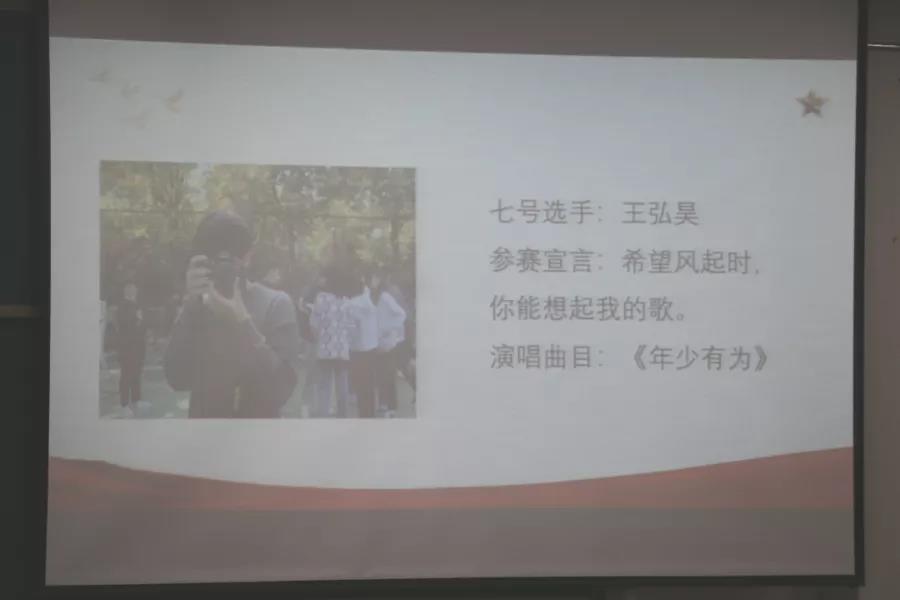 少年之音似湖荡漾于心。第三轮,3名选手从亲友团中选出一人帮唱。学生会18级主席刘天祥的演唱迎来尾声。由《一点点》到《夏天的风》再到《有点甜》,刘靖宇赋予歌之情,夺得本次比赛冠军,亚军是8号张严菁,季军是5号侯清心。