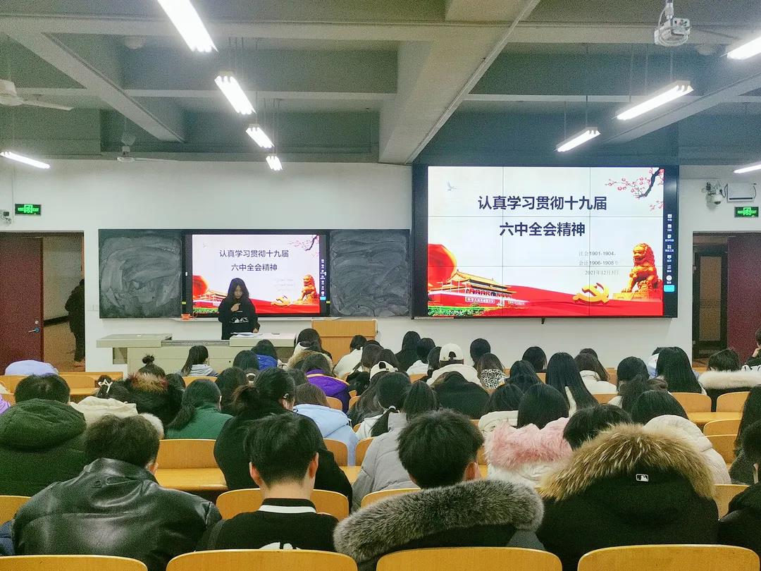 师生们深入学习《中国共产党第十九届中央委员会第六次全体会议公报》《中共中央关于党的百年奋斗重大成就和历史经验的决议》等会议文件精神,深刻领会党的十九届六中全会的重大意义、精神实质,深刻领会一百年来党领导人民创造的新民主主义革命、社会主义革命和建设、改革开放和社会主义现代化建设、新时代中国特色社会主义的伟大成就,深刻领会党百年奋斗的历史意义、积累的宝贵历史经验。