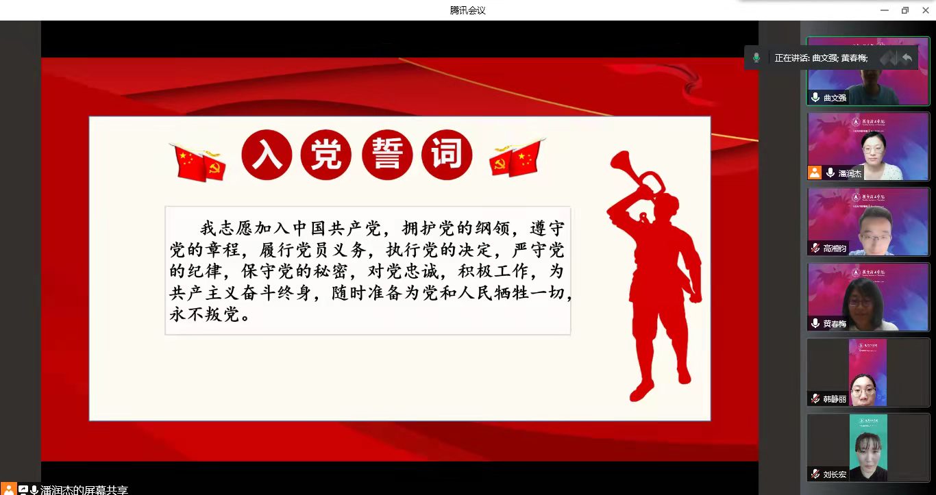 入党誓词包含了党的性质、宗旨、纲领、目标等,从党的十二大写入党章沿用至今,是共产党人初心使命的集中体现。初心易得,始终难守。习近平总书记强调:“入党誓词字数不多,记住并不难,难的是终身坚守。每个党员要牢记入党誓词,经常加以对照,坚定不移,终生不渝。”在“七一”来临之际,各支部书记带领支部党员一起重温入党誓词。鲜红的党旗、响亮的誓言,辉映着忠诚、彰显着责任,伴随着铿锵有力的宣誓声,党员同志们再一次增强了共产党人的责任感、光荣感和使命感,坚定了要以实际行动恪守对党的承诺,扛起使命担当,发挥党员先锋模范作用的精神信念。支部的党员教师也纷纷表示,要牢记党的使命,做到不忘初心,时刻保持一名党员的纯洁性、艰苦朴素和团结友爱的工作作风,在平凡的岗位上做好自己的本职工作,对自己、学院、学校和学生负责,做出自己的贡献。在为实现第二个百年奋斗目标、实现中华民族伟大复兴的征途中,充满信心,充满干劲,相信党和国家。