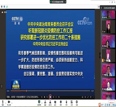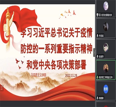 为贯彻落实国家卫生健康委发布的《关于进一步优化新冠肺炎疫情防控措施 科学精准做好防控工作的通知》(以下简称《通知》)精神。11月25日,马克思主义学院党总支通过腾讯会议的方式召开会议,学习了习近平总书记关于疫情防控的一系列重要指示精神和党中央各项决策部署疫情防控最新要求。