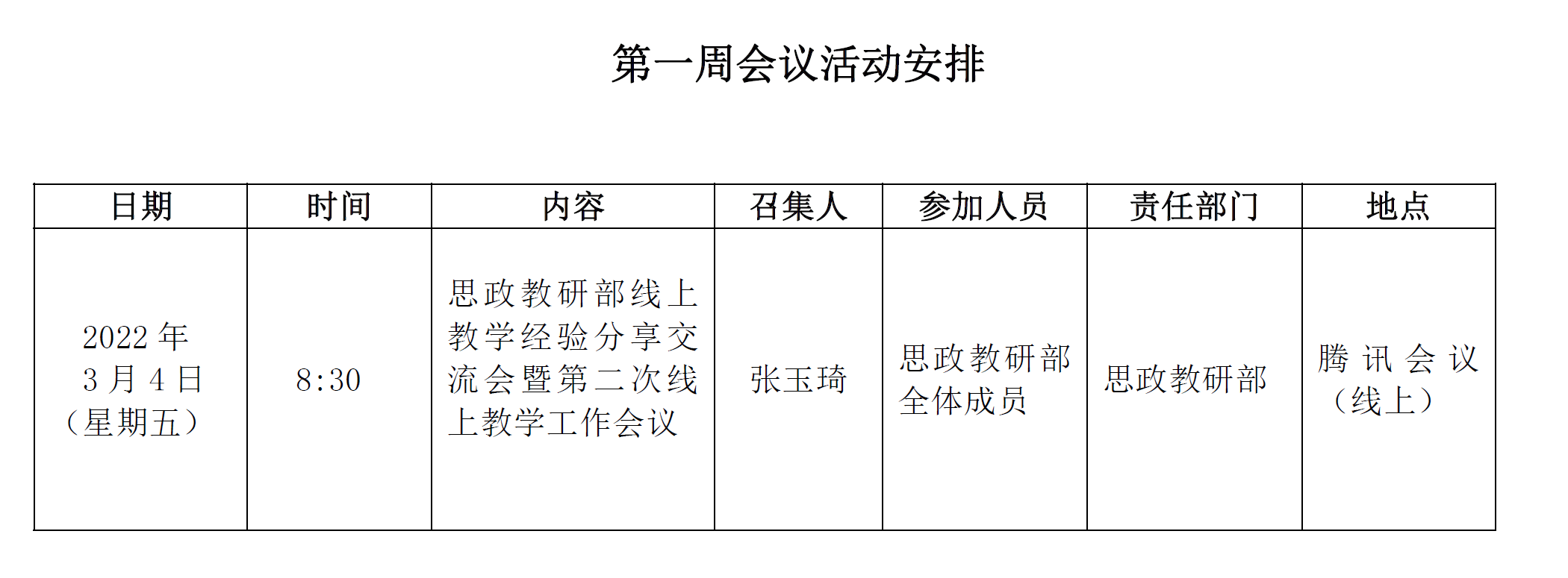 思政教研部第一周会议活动安排