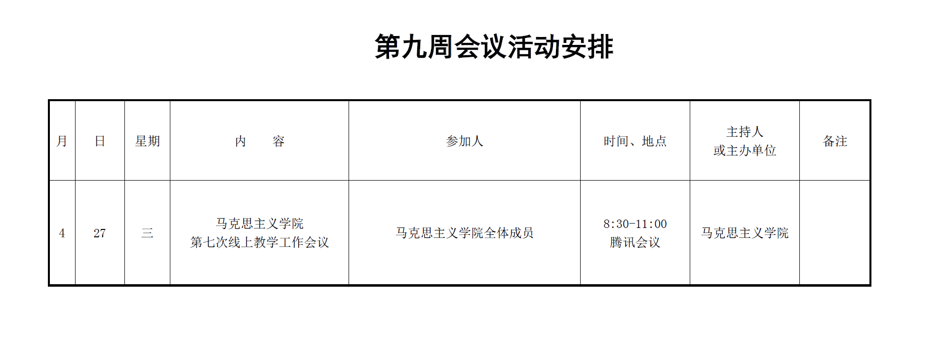 马克思主义学院第九周会议安排