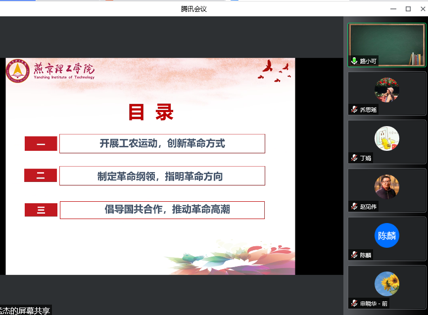 为进一步推动集体备课高效开展,4月2日上午,《中国共产党史》课程组通过腾讯会议线上开展第二次集体备课会。特邀路小可教授对备课进行指导,党史课程组全体教师及部分思政部教师参加会议,周孟杰老师主持会议。