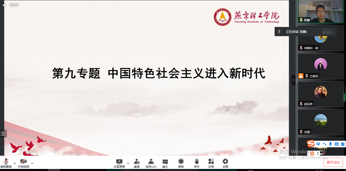 6月1日上午,《中国近现代史纲要》课程组开展了第十章“中国特色社会主义进入新时代”的线上集体备课会,乔思瑶老师主持会议,学院领导以及纲要课程组全体教师和部分马克思主义学院教师参会。