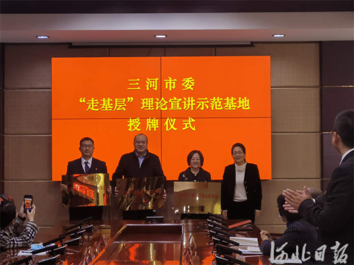 为深入学习宣传贯彻党的二十大精神,引导全市党员干部群众自觉以习近平新时代中国特色社会主义思想为指导,推进马克思主义中国化时代化,全面促进高校与地方合作,三河市委宣传部与域内高校决定开展“走基层”理论宣讲示范点建设,并于11月4日举行示范基地授牌仪式。