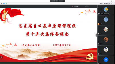 12月7日,马克思主义学院《马克思主义基本原理》课程组全体教师在腾讯会议召开了2022-2023学年第一学期《马克思主义基本原理》课程组第十五次集体备课会。本次会议由马克思主义基本原理教研室主任刘倩主持。