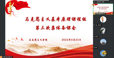 为进一步推动习近平新时代中国特色社会主义思想和党的二十大精神融入《马克思主义基本原理》课程教学,讲好原理课,提高教学实效性,进一步推动思政课建设高质量发展。8月23日上午,《马克思主义基本原理》课程组利用暑期时间,通过腾讯会议在线上召开了2023-2024学年第一学期《马克思主义基本原理》课程组第三次集体备课会,课程组全体教师参加会议,会议由马克思主义基本原理(以下简称“原理”)课程组负责人侯薇老师主持。