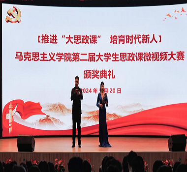 为进一步推进“大思政课”实践教学,提升立德树人成效,5月20日,马克思主义学院在报告厅召开了“推进‘大思政课’ 培育时代新人”马克思主义学院第二届大学生思政课微视频大赛颁奖大会。学校党委书记朱代春,马克思主义学院领导、思政课教师以及来自各个学院的学生代表共计500余人参加此次活动。