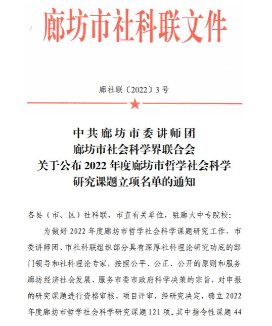 【科研引航 永无止境】我院喜获两项2022年度廊坊市哲学社会科学研究课题立项