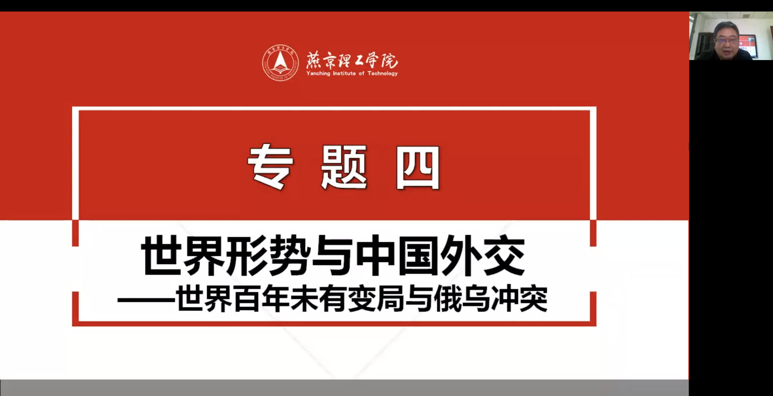 为了响应习近平总书记提出的“‘大思政课’我们要善用之”的号召,6月1日,燕京理工学院马克思主义学院“云端”上的大思政课系列之“世界形势与中国外交”专题开讲,校长助理吴敏教授开启直播“云课堂”,为计科2001-2007班同学讲授了一堂生动的大思政课。马克思主义学院党总支书记赵见伟及全体马克思主义学院教师共同聆听。马克思主义学院《形势与政策》课程负责人丁娟主持了这堂课。