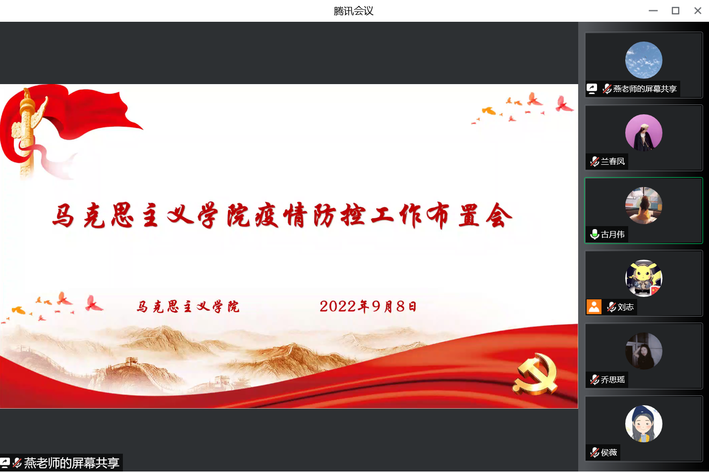 9月8日,马克思主义学院于腾讯会议紧急召开线上疫情防控工作布置会,学院领导及全体教师参加。