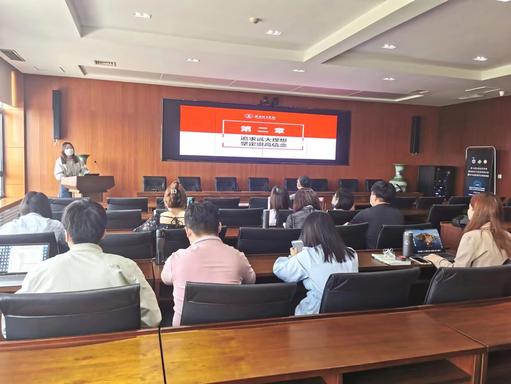 此次备课会围绕《思想道德与法治》课程的第二章《追求远大理想 坚定崇高信念》展开,作为本章备课小组成员,王红艳、郭雯、袁宇茜三位老师运用贴近学生实际生活的案例分别对本章第一节《理想信念的内涵及重要性》、第二节《坚定信仰信念信心》、第三节《在实现中国梦的实践中放飞青春梦想》三部分内容进行了说课展示。与会老师围绕本章内容结合自身经验分享了教学看法,也就教学中存在的问题展开了热烈的讨论,大家纷纷表示收获颇丰。