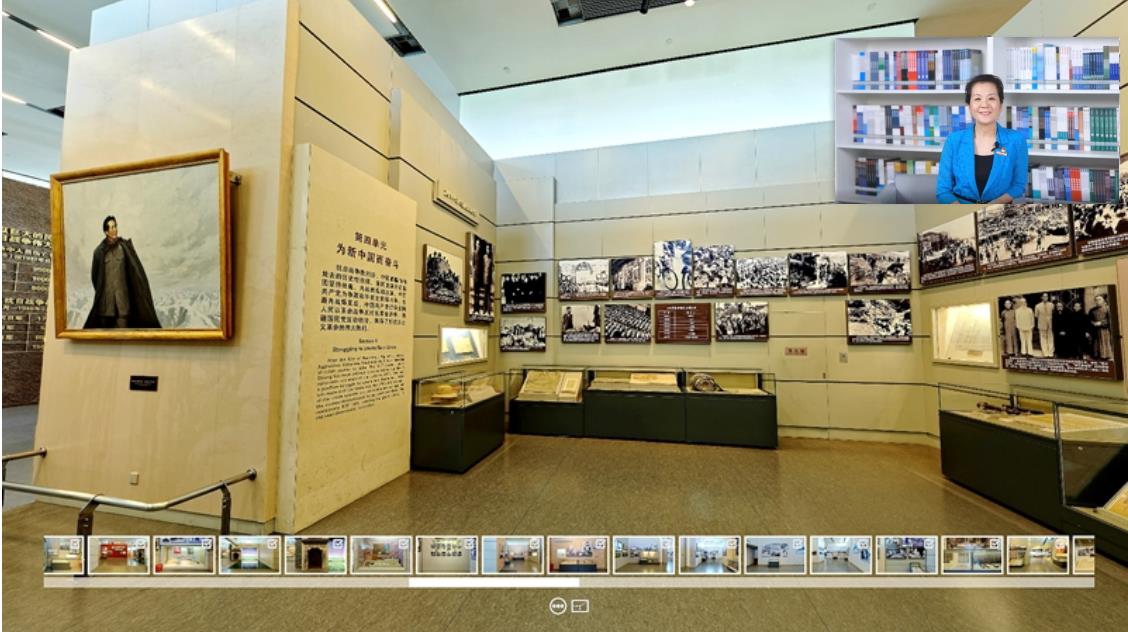 刘校长融合AR技术和线上教学平台,带领师生“云”览《复兴之路》数字展馆,重点讲解了“中国沦为半殖民地半封建社会” ”探求救亡图存的道路”“中国共产党肩负起民族独立人民解放历史重任”“建设社会主义新中国”四个主题场景,开启了一场生动的历史对话、讲述了一堂直抵灵魂的思政课程,“零距离”共同感悟中国各阶层人民为实现中华民族伟大复兴进行的种种伟大探索。通过“复兴之路”云展览中呈现的一件件珍贵的文物、一幅幅历史的照片系统回顾了1840年鸦片战争以来,陷入半殖民地半封建社会深渊的中国各阶层人民在屈辱苦难中奋起抗争,中华民族的强国之梦和不懈探索的伟大历程。翔实的史料、恢弘的气势、珍贵的历史图片,为世人展示了一幅民族复兴之画卷,特别是中国共产党领导全国各族人民争取民族独立、人民解放、国家富强、人民幸福的光辉历程。