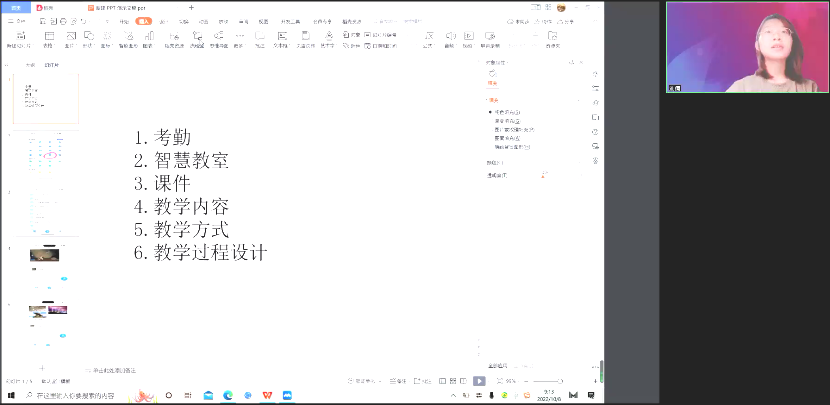 会上,黄春梅老师介绍了本学期教师要着重关注的几个问题。第一,关注线下学生的防疫,如教室的通风,学生口罩佩戴情况;第二,关注线上听课的效果,建议通过访谈或调研方式了解情况;第三,关注学生签到。随后,网络平台负责人刘倩老师围绕线上线下教学效果和质量进行了教学经验分享。刘倩老师的分享紧紧围绕以下六个方面展开:第一,关于考勤问题,尤其注意要设置提前签到;第二,智慧教室问题,注意围圈分组就座;第三,课件问题,尤其注意课件的材料要丰富,形式要多样;第四,教学内容问题,要注意根据本专科学生的特点,设计教学内容的难度;第五,教学方式问题,特别注意设置抢答环节,提高互动参与度;第六,关于教学过程设计的问题,主要是教学的五个环节要注意。