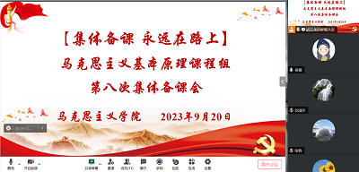 为进一步学习贯彻党的二十大精神,深入落实习近平总书记在学校思想政治理论课教师座谈会上的讲话精神,充分发挥思政课在落实立德树人根本任务中的关键作用,全面提升我校思政课建设的质量与水平,9月20日上午,马克思主义学院《马克思主义基本原理》(以下简称“原理”)课程组通过腾讯会议在线上召开了2023-2024学年第一学期第八次集体备课会,课程组全体教师参加会议,会议由原理课程组负责人侯薇老师主持。
