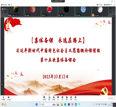 10月13日上午,《习近平新时代中国特色社会主义思想概论》课程组以腾讯会议的方式召开了第十五次集体备课会,课程组全体教师参加会议,会议由《习近平新时代中国特色社会主义思想概论》课程组负责人燕伟璇老师主持。
