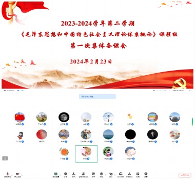 为了更好开展新学期的教学工作,2月23日《毛泽东思想和中国特色社会主义理论体系概论》课程组在腾讯会议进行本学期第一次集体备课会。会议由课程组负责人韩静丽主持,马克思主义学院副院长黄春梅和课程组全体教师参加。