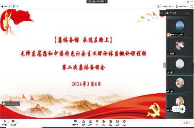 为深刻领悟马克思主义中国化时代化的内涵,让理论闪耀真理的光芒,为讲好导论“马克思主义中国化时代化的历史进程与理论成果”,3月6日上午马克思主义学院《毛泽东思想和中国特色社会主义理论体系概论》课程组在525会议室以及线上同步召开了第二次集体备课会,会议由课程负责人韩静丽主持,课程组全体教师参会。