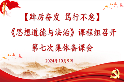 为进一步学习贯彻二十届三中全会精神,深入弘扬教育家精神加强新时代高素质专业化教师队伍建设,全面提升思政课建设的质量与水平,10月9日下午,马克思主义学院《思想道德与法治》(以下简称“德法”)课程组在K1-104召开了2024-2025学年第一学期第七次集体备课会。课程组全体教师参加会议,会议由刘旺华老师主持。